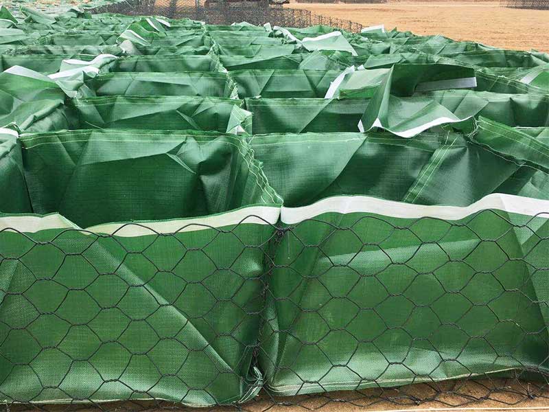 石籠網袋也叫做土工籠袋、土工固袋聚丙烯為主要原料,經擠出、切膜、拉伸制成扁絲或裂膜絲后編織而成的疏水型和隔水型土工合成材料。編織土工布具有重量輕,強度高,延伸率小,整體性好,施工方便,加固性能良好,價格低等特點。